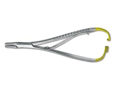 - Thiết kế theo hình thái học, có khoá, phần kẹp kim câu có rãnh lưới tạo độ bám chắc và ổn định kim khâu chống trượt.