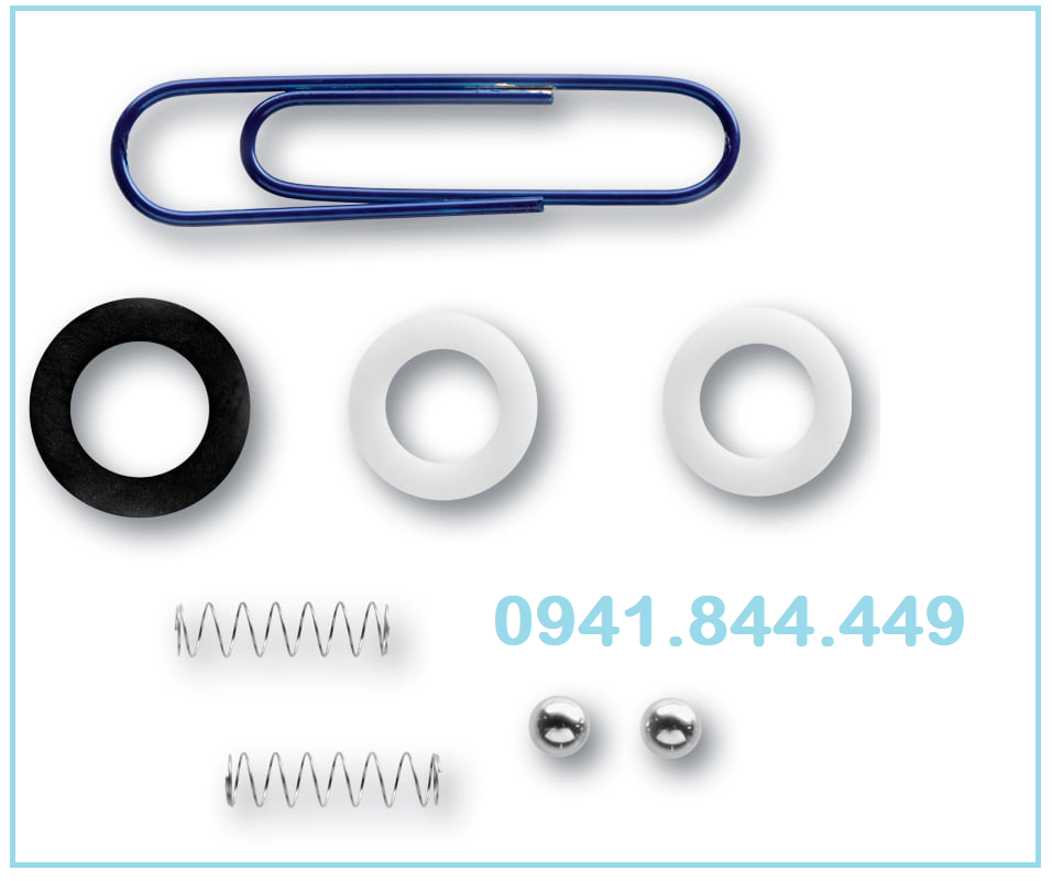 Bao gồm: 02 bi, 02 lò xo, 02 gioăng nhựa trắng, 01 gioăng cao su màu đen, ghim.