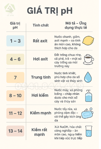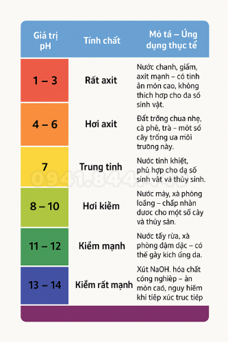 | Giá trị pH | Tính chất | Mô tả – Ứng dụng thực tế |