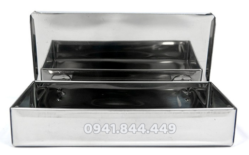 - Hộp đựng dụng cụ y tế chữ nhật được làm bằng chất liệu inox, dùng để đựng dụng cụ y tế inox như: pen, kéo, nhíp y tế, bông gòn, gạc y tế… Sản phẩm được sử dụng phố biến trong các bệnh viện, phòng khám, các trung tâm spa, thẩm mỹ viện.