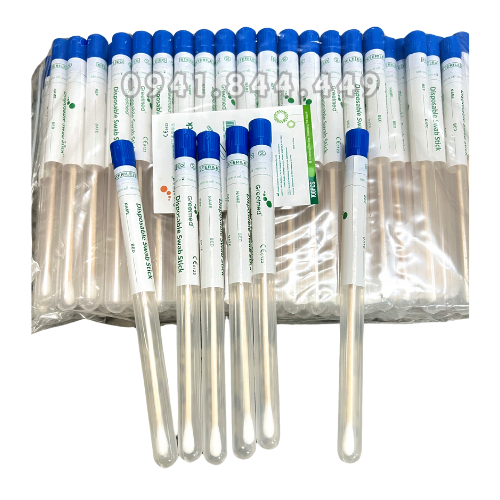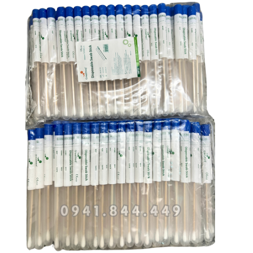 - Chất liệu: Ống nhựa PP, nắp nhựa HDPE, Thân que bằng gỗ, một đầu gòn, đựng trong ống nghiệm